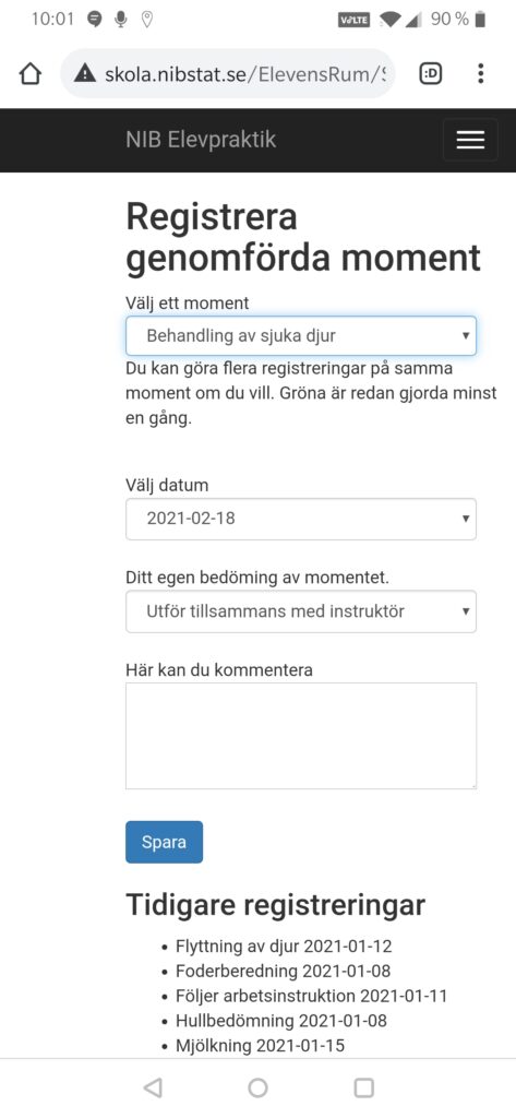 Just nu testar vi ett helt nytt verktyg från NIB Programmering. Det är ett webbverktyg för registrering av elevpraktikmoment på naturbruksgymnasier. Det är Grönt centrum på Gotland som lägger ut elevpraktiker på olika grupper. Eleverna loggar in och registrerar eftersom de utför de olika momenten och sen kan instruktörer och lärare se hur arbetet på praktiken fungerar.